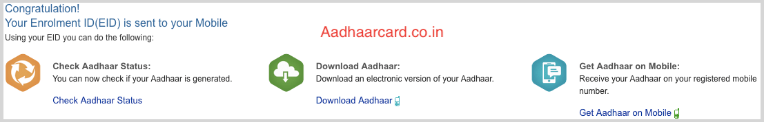 Now you can do some things with your Enrollment ID like Checking Your Aadhaar Status, Downloading Aadhar and Getting Your Aadhaar Number on Mobile.