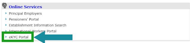 - When you are on the main page of EPFO portal you will see a section named “ONLINE SERVICES” where you have to find and click on the “eKYC Portal” to start the further process.
