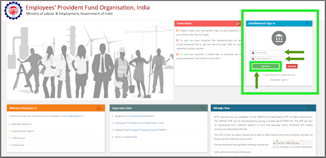➤ The first step is to log in to official EPF employer portal, When you’re on the main window of that portal, at the right side you will see a section for login where the employer has to fill in his/her user id and password.