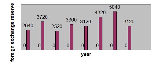 1.The bar graph given below  shows the foreign exchange reserves of a country