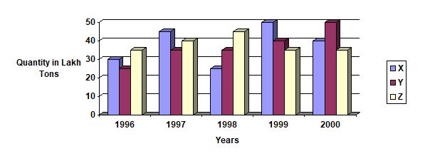 production of paper(in laks tonnes) by three companys x,yand z over the years