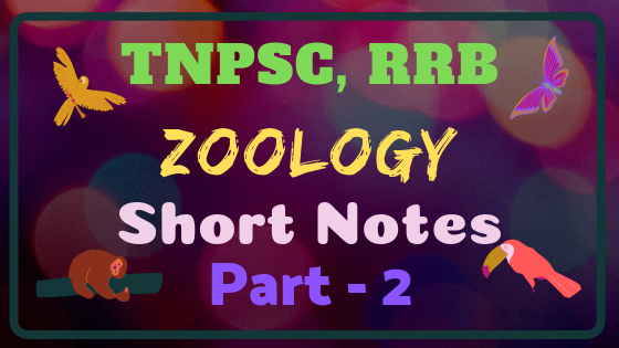 TNPSC,RRB பொது தேர்விற்கு தயாராகும் தேர்வர்களுக்காகவிலங்கியல்பாட பகுதியில் இருந்து எடுக்கப்பட்ட முக்கிய குறிப்புகளின் தொகுப்பு இங்கே கொடுக்கப்பட்டுள்ளது. இதுவிலங்கியல்பகுதி 1ன் தொடர்ச்சியாகும். மேலும் இந்த பகுதியின் தொடர்ச்சியை பின்வரும் பதிவுகளில் காணலாம்.இது TNPSC Gp-2, Gp-2A, Gp-4 மற்றும் அனைத்து தேர்வுகளுக்கும் உகந்தது.இதன் தொடர்ச்சியை நாம் பின்வரும் பதிவுகளில் காணலாம். இது இலவசமாக DOWNLOAD செய்து படிக்கும் வகையில் PDF வடிவில் உருவாக்கப்பட்டுள்ளது.