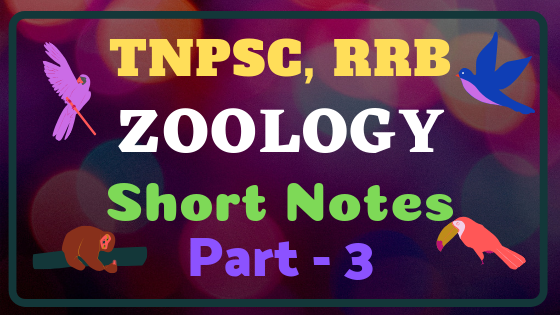 TNPSC,RRB பொது தேர்விற்கு தயாராகும் தேர்வர்களுக்காகவிலங்கியல்பாட பகுதியில் இருந்து எடுக்கப்பட்ட முக்கிய குறிப்புகளின் தொகுப்பு இங்கே கொடுக்கப்பட்டுள்ளது. இதுவிலங்கியல் பகுதி 1, விலங்கியல் பகுதி 2 ன் தொடர்ச்சியாகும். மேலும் இந்த பகுதியின் தொடர்ச்சியை பின்வரும் பதிவுகளில் காணலாம்.இது TNPSC Gp-2, Gp-2A, Gp-4 மற்றும் அனைத்து தேர்வுகளுக்கும் உகந்தது.இதன் தொடர்ச்சியை நாம் பின்வரும் பதிவுகளில் காணலாம். இது இலவசமாக DOWNLOAD செய்து படிக்கும் வகையில் PDF வடிவில்உருவாக்கப்பட்டுள்ளது.