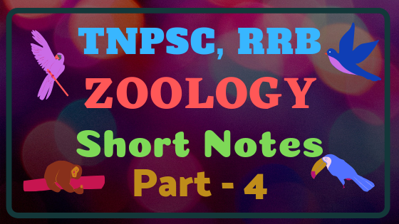 TNPSC,RRB பொது தேர்விற்கு தயாராகும் தேர்வர்களுக்காகவிலங்கியல்பாட பகுதியில் இருந்து எடுக்கப்பட்ட முக்கிய குறிப்புகளின் தொகுப்பு இங்கே கொடுக்கப்பட்டுள்ளது. இதுவிலங்கியல் பகுதி 1, விலங்கியல் பகுதி 2 மற்றும்விலங்கியல்பகுதி 3ன் தொடர்ச்சியாகும். மேலும் இந்த பகுதியின் தொடர்ச்சியை பின்வரும் பதிவுகளில் காணலாம்.இது TNPSC Gp-2, Gp-2A, Gp-4 மற்றும் அனைத்து தேர்வுகளுக்கும் உகந்தது.இதன் தொடர்ச்சியை நாம் பின்வரும் பதிவுகளில் காணலாம். இது இலவசமாக DOWNLOAD செய்து படிக்கும் வகையில் PDF வடிவில்உருவாக்கப்பட்டுள்ளது.