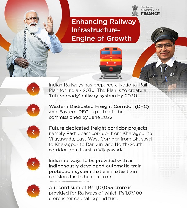 In the budget, it was announced that Western Dedicated Freight Corridor (DFC) and Eastern DFC are expected to be commissioned by June 2022. Further, the Finance Minister proposed the following additional initiatives to be taken up: