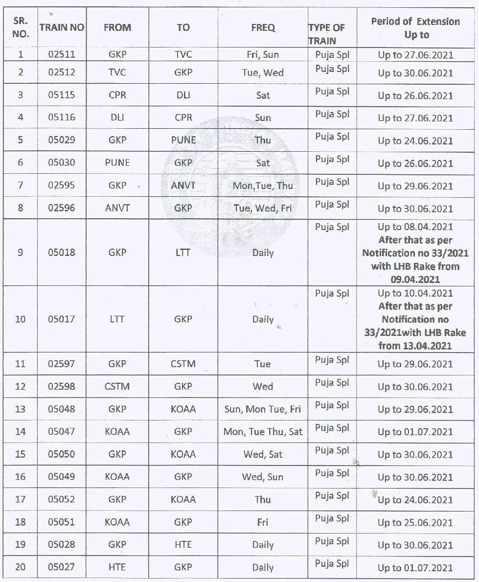 05018 GKP LTT Daily Up to 08.04.2021 After that as per Notification no 33/2021 with LHB Rake from 09.04.2021