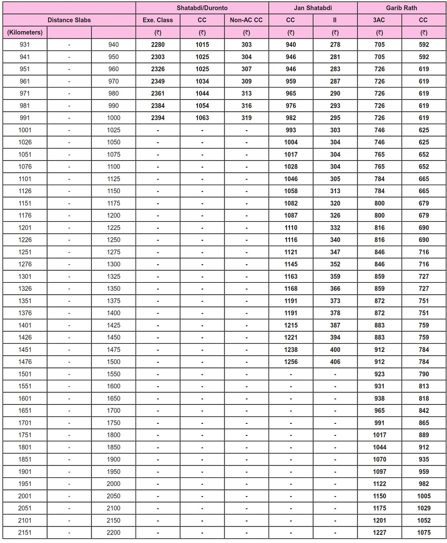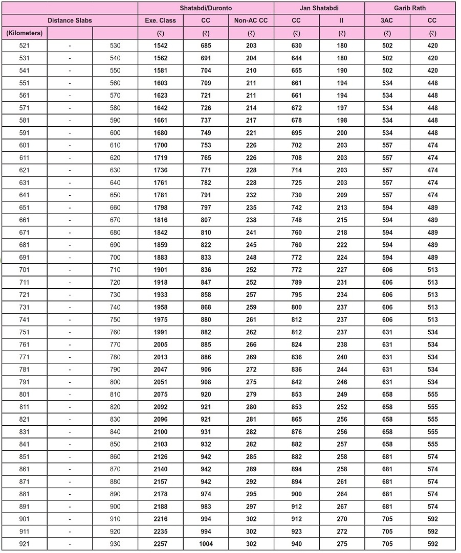 | 3 | Rajdhani Express Trains Fare Table 2018-19 | Click Here |