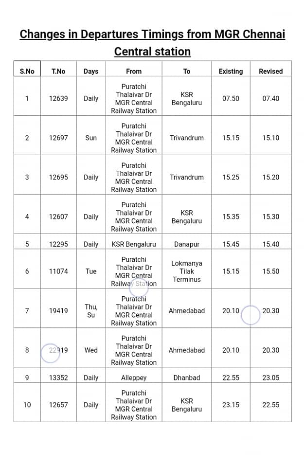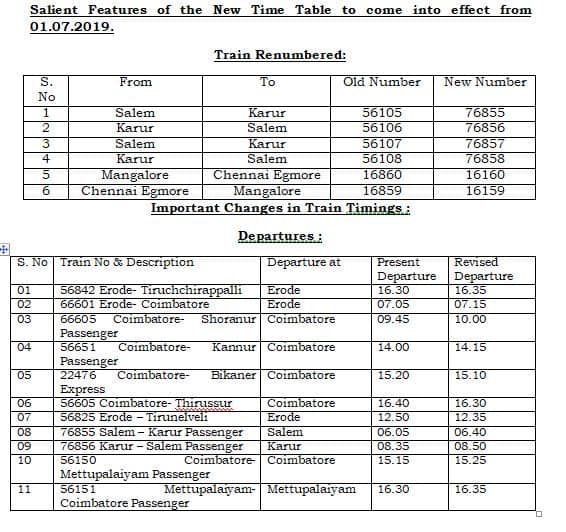 Southern Railway New Time Table 2022-2023 Salient features of New Time Table over Salem Division effective from 1.7.2019 Southern Railway New Time Table 2023-24 Southern Railway New Time Table 2022-2023 By irctcportalPosted on June 29, 2019Posted in New Time TableTagged NEW TIME TABLE, New Train Time Table 2019-20, SOUTHERN RAILWAY, Southern Railway New Time Table 2019-2020 Post navigation North Central Railways New Time Table 2022-2023Chennai Suburban Trains New Time Table 2023