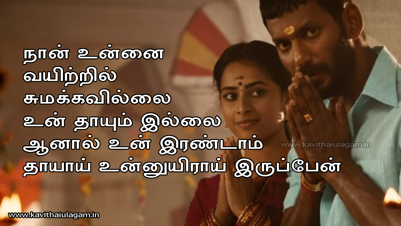 naan unnai vayitril sumakkavillai un thaayum illai aanaal un irandaam thaayaai unnuyiraai iruppaen
