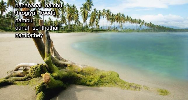 Nanbanai nambu dhrogiyai kooda nambu aanal sonthathai nambathe…! Love Kavithai | Love Poems In English By telugulyricsPosted on September 25, 2017Posted in Tamil Kavithai Post navigation Natpu KavithaiBirthday Wishes In Tamil | Birthday Kavithai Leave a Reply Cancel replyYou must be logged in to post a comment.