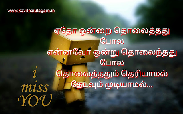 Yetho ondrai tholaithathu pola ennavo ondru tholainthathu pola tholaithathum theriyaamal thedavum mudiyaamal…! I Miss You…!