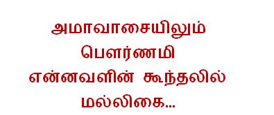 Amavaasaiyilum pournami.. Ennavalin koonthalil malligai… Tamil Kavithai | Love Kavithai By telugulyricsPosted on August 26, 2016Posted in love kavithai Post navigation Tamil Kavithai | Love KavithaiTamil Kavithai | Love Kavithai Leave a Reply Cancel replyYou must be logged in to post a comment.