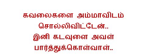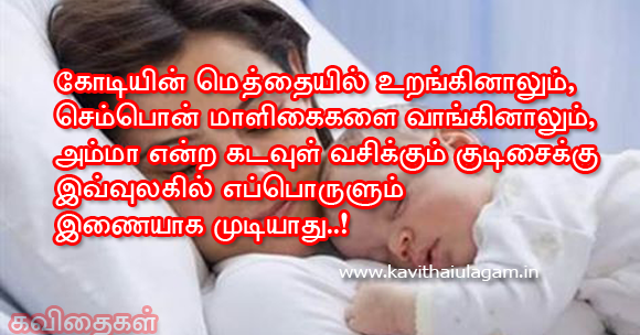 Mudiyaatha paasam unakkaaga azhum vizhigal nee mattum sainthu kollum oru thol unnai pasikkaamal paarthu kollum ore oru devathai “AMMA”. Amma (Mother) Kavithai | Tamil Kavithai In English By telugulyricsPosted on March 24, 2016Posted in Tamil Kavithai Post navigation Tamil Kavithai | Life Kavithai Leave a Reply Cancel replyYou must be logged in to post a comment.