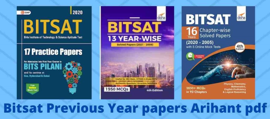 BITS is the top engineering school in India. In this specific post, we have transferred BITSAT Previous Years Topic-wise Questions with Solutions by Disha Publication, BITSAT Practice Papers by GKP distributions, and BITSAT Self Study Preparation Guide by Arihant Publications.