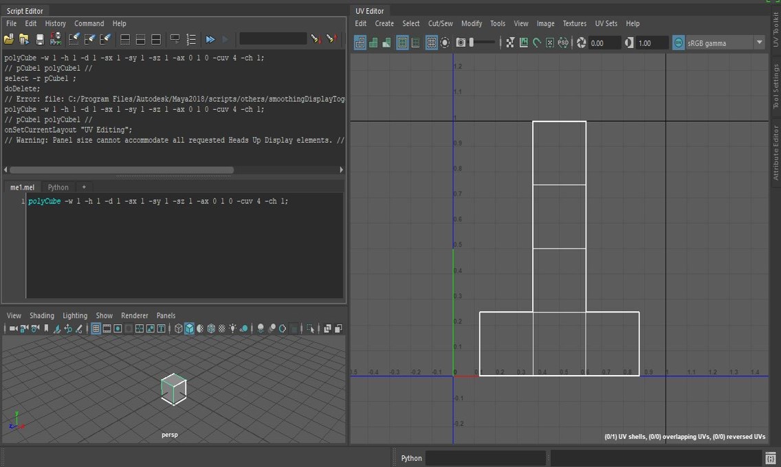 polyCube -w 1 -h 1 -d 1 -sx 1 -sy 1 -sz 1 -ax 0 1 0 -cuv 4 -ch 1;