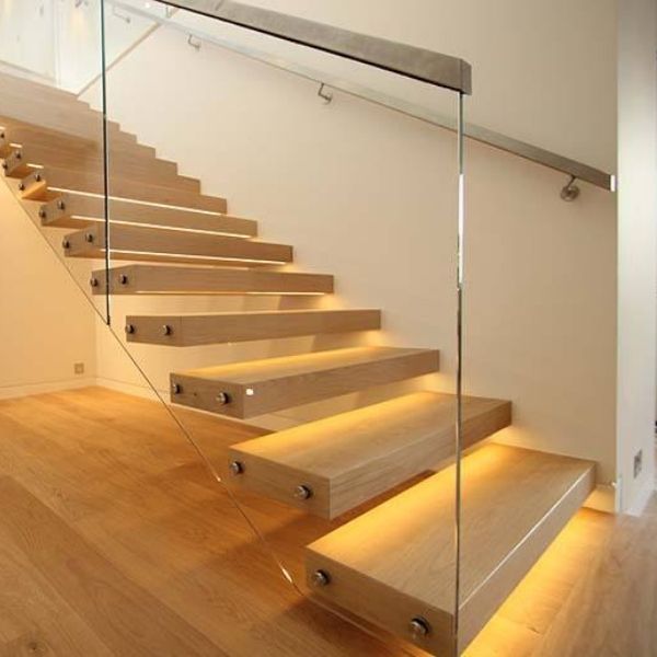 Look: Lights embedded into the actual staircase treads (for example, LED strips or tiles with integrated lighting).