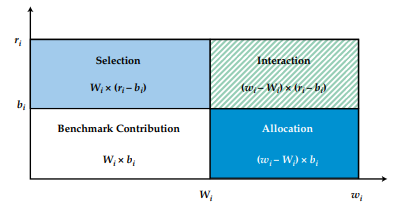 α (Fund Manager’s Performance) =Sum of (Asset Allocation + Security Selection + Interaction)