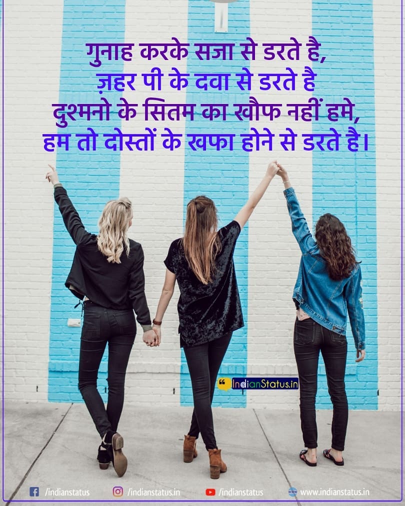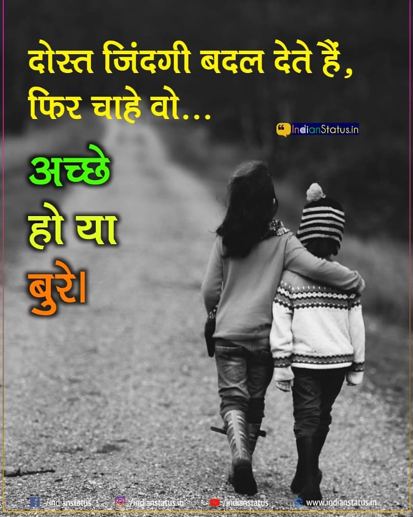 Find Great Collection Of Yaari Dosti attitude status for Facebook & Whatsapp, तेवर स्‍टेटस इन हिन्‍दी, देसी Friendship Status in Hindi.