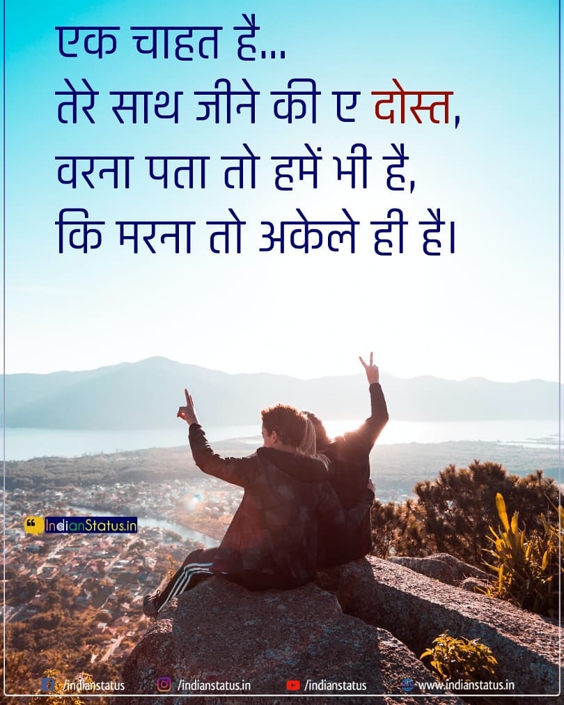 Find Great Collection Of Yaari Dosti attitude status for Facebook & Whatsapp, तेवर स्टेटस इन हिन्दी, देसी Friendship Status in Hindi.