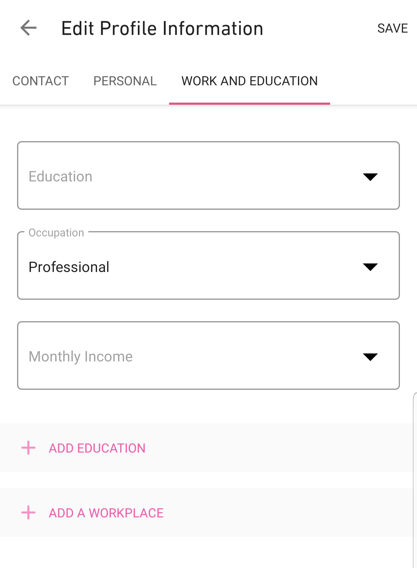 Click on “Account”, then click on “Edit Profile” and provide all the profile information with your “contact, personal, work & Education” details.