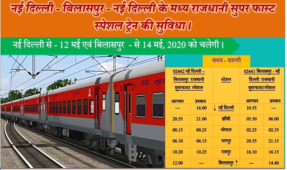 AC Special train between Bilaspur-New Delhi (Train No.02441/Train No.02442) Timings, Stoppages and Frequency