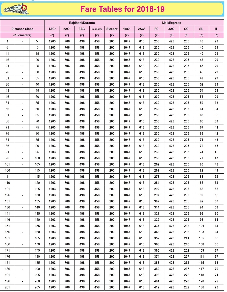 | 3 | Rajdhani Express Trains Fare Table 2025-19 | Click Here |