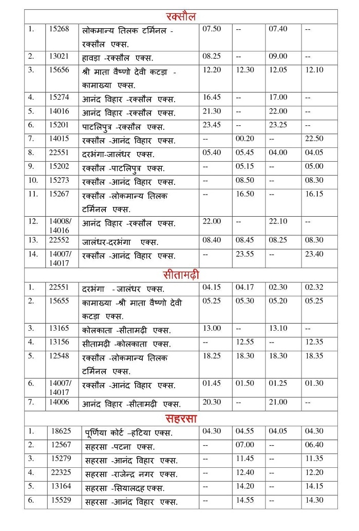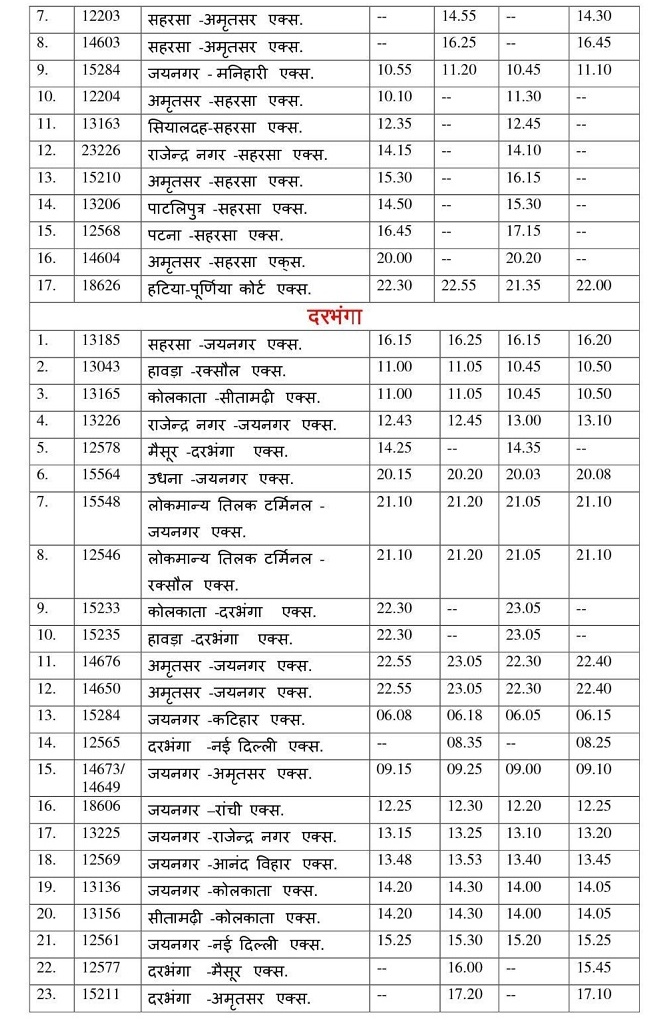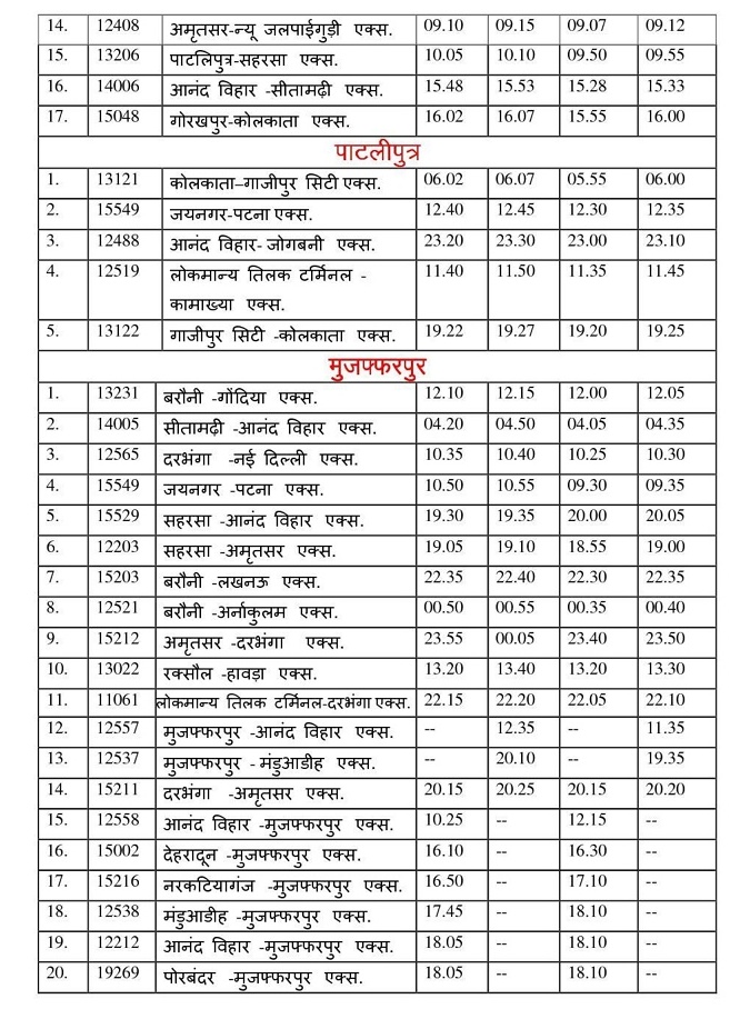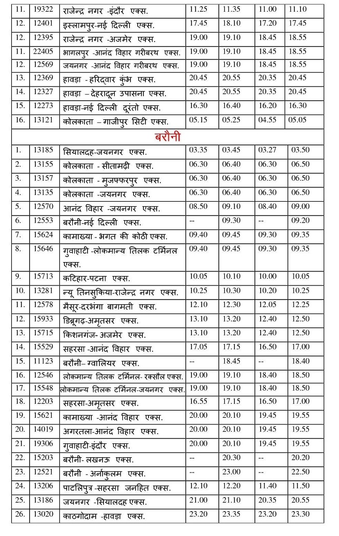 Trains across East Central Railway routes were integrated into the revised schedule, optimizing timing and connectivity. - Mail & Express Trains: