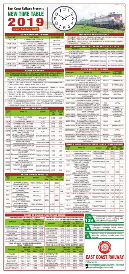 Unfortunately, there’s no official release available yet that mirrors a comprehensive “public time table” for East Coast Railway covering all divisions, routes, and scheduling updates. Full timetable brochures or zone-wide schedule changes (like those seen in other railway zones) haven’t been published or reported so far.