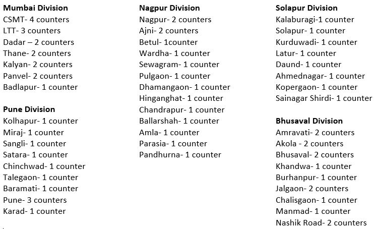 Railway Reservation Counter Open following stations In Western Railway and Central Railway