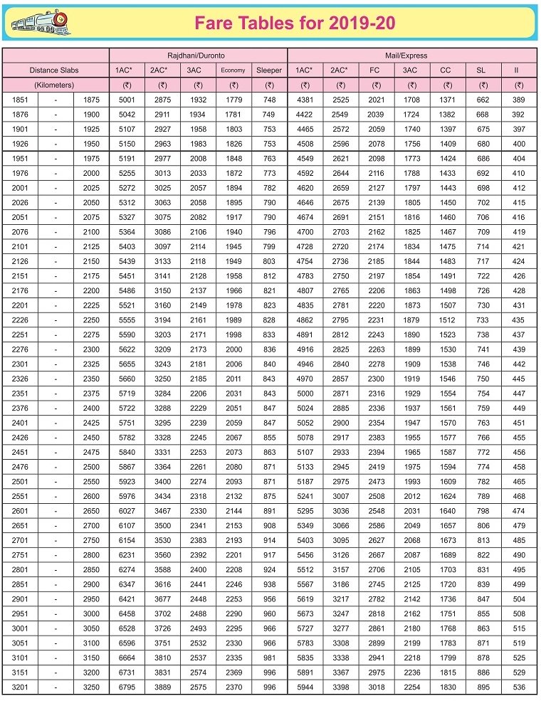 • 2A from ₹4,140 to ₹4,180 (₹40 hike)