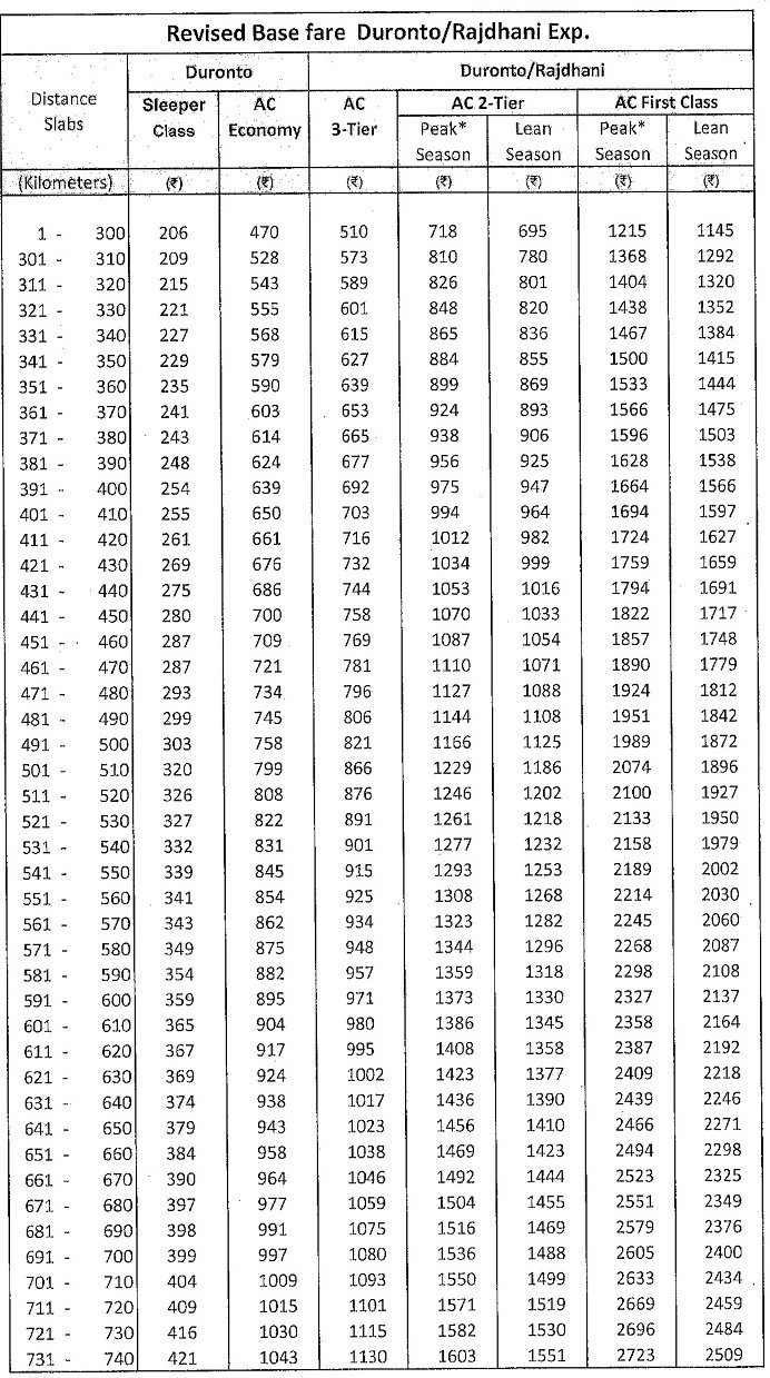 Rajdhani Express Fare Chart 2025-20231 (AC 3-Tier, AC 2-Tier, AC First Class) (2801-3500)