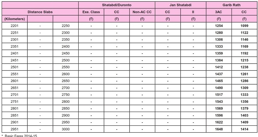 | 3 | Rajdhani Express Trains Fare Table 2018-19 | Click Here |