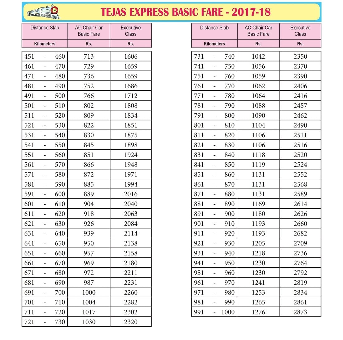 Tejas Express Fare Chart 2025-18